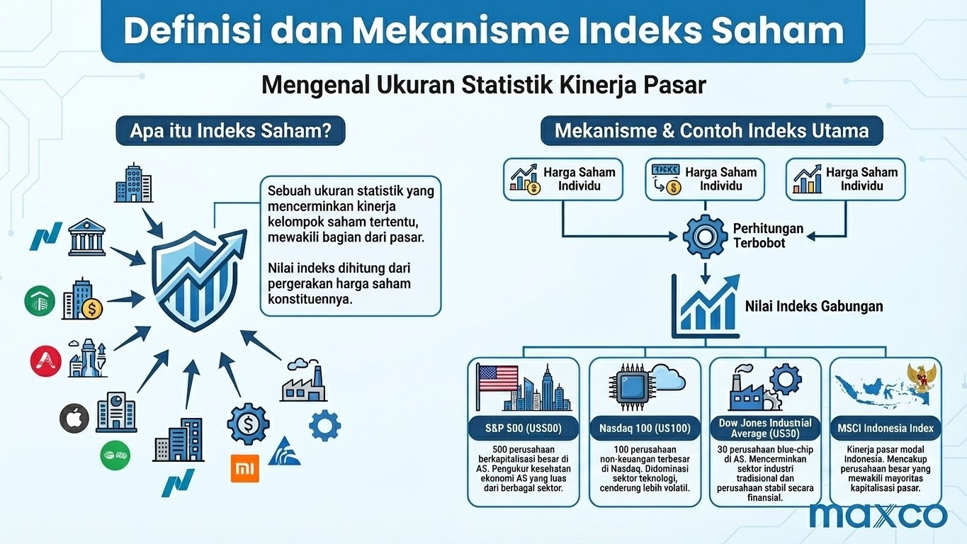 1.1 Apa Itu Indeks Saham? Sebelum melangkah ke strategi, kita harus mendefinisikan instrumen ini secara harfiah. Indeks Saham adalah ukuran statistik yang mencerminkan kinerja sekelompok saham tertentu yang mewakili sebagian dari pasar. Nilai indeks dihitung dari pergerakan harga saham-saham konstituen di dalamnya.