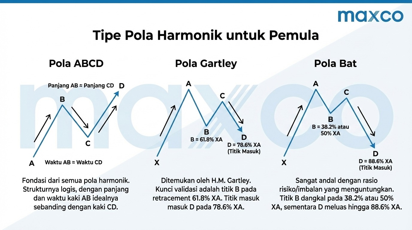 MAxco.co.id –  Dalam artikel ini, kita akan membahas secara mendalam bagaimana memecahkan kebingungan tersebut dengan belajar harmonic pattern. Trader Maxco akan mempelajari secara komprehensif apa itu pola harmonik, mengapa metode ini secara statistik sangat efektif, jenis-jenis pola dasar yang wajib diketahui, hingga solusi praktis berupa langkah-langkah eksekusi untuk menerapkannya langsung di pasar finansial.