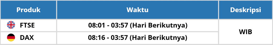 Kami ingin memberitahukan kepada Anda bahwa akan ada pembaruan jadwal sesi perdagangan sehubungan dengan Jadwal Waktu Musim Dingin Eropa, yang akan dimulai pada Senin, 27 Oktober 2025. Mohon catat tanggal dan waktu dalam tabel di bawah ini: