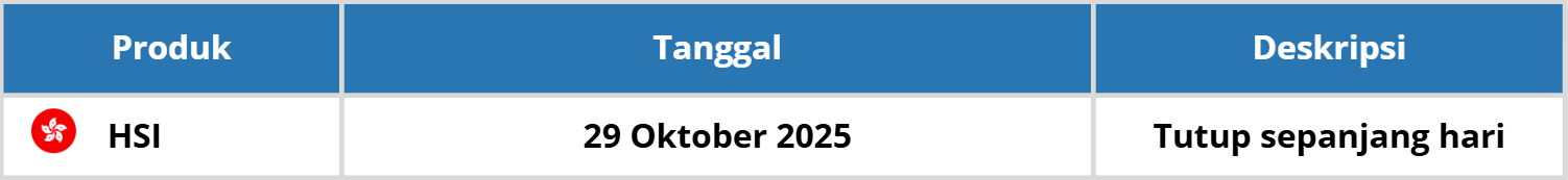 Kami informasikan bahwa terdapat perubahan jadwal trading dikarenakan Hari Festival Chung Yeung, mohon perhatikan tanggal dan waktu yang tertera pada table berikut: