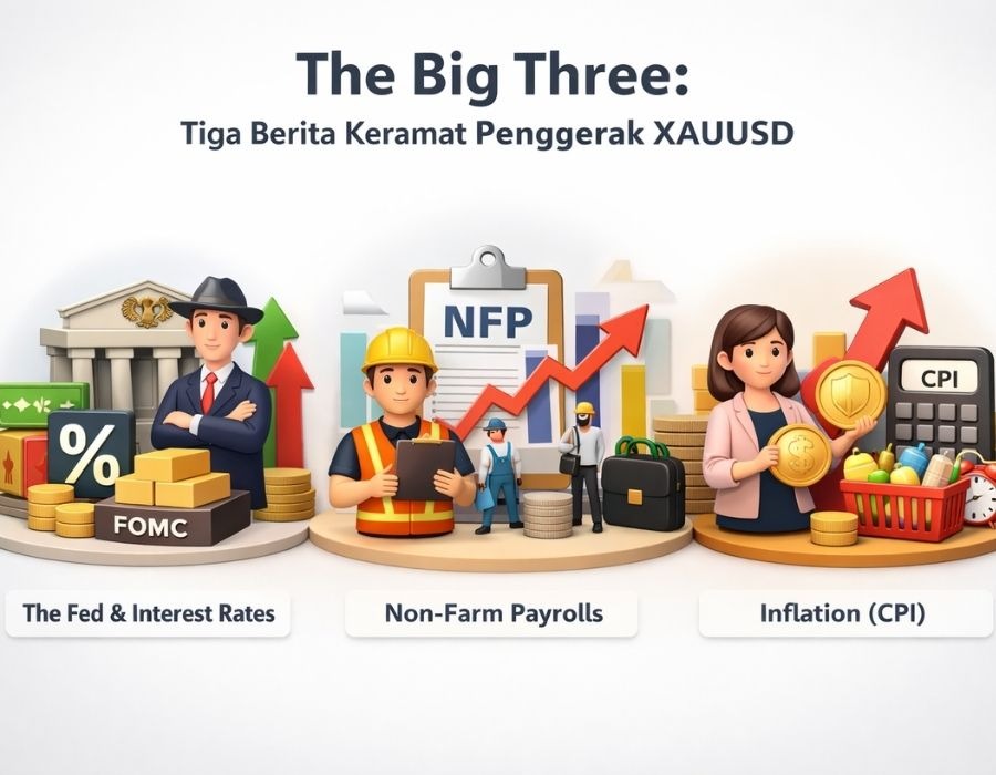 Daripada pusing memantau puluhan data ekonomi, jauh lebih efektif kalau kamu fokus pada tiga berita utama ini. Dalam dunia berita XAUUSD, ketiganya adalah penggerak terbesar.