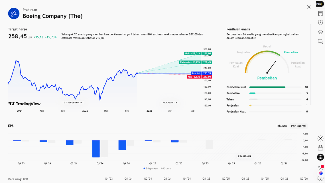 - Ada risiko eksternal seperti regulasi, persetujuan sertifikasi pesawat, supply-chain, dan kondisi makro (misalnya permintaan global), yang semuanya bisa menghambat pemulihan Boeing.
