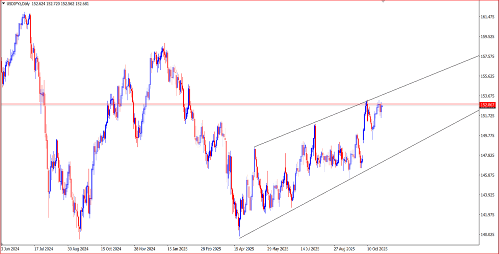 Pergerakan USD/JPY di kisaran 153–154 diperkirakan menjadi zona minat jual harian jangka menengah, dengan potensi penurunan menuju level strategis di sekitar 147, 143, dan 139. Sementara itu, batas pergerakan (swing range) masih memungkinkan naik ke kisaran 154–157.