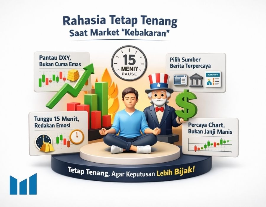 Setelah tahu bahwa banyak berita ternyata cuma memancing reaksi berlebihan, fokus berikutnya bukan lagi “bagaimana jadi yang paling cepat,” tapi “bagaimana tetap tenang.” Karena dalam market emas, ketenangan itu bukan sikap pasif. Justru itu alat kerja. Semakin heboh situasi, semakin penting kamu punya filter yang jelas sebelum bertindak.