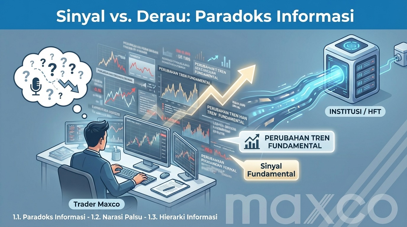 Penting untuk menyadari posisi kita dalam rantai informasi. Institusi besar dan algoritma trading (High Frequency Trading) memiliki akses ke data berita dalam hitungan mikrodertik sebelum berita itu muncul di layar Trader Maxco. Ketika Anda bereaksi terhadap berita, Anda sering kali sudah terlambat dan justru menjadi sumber likuiditas bagi institusi yang ingin keluar dari pasar (profit taking).