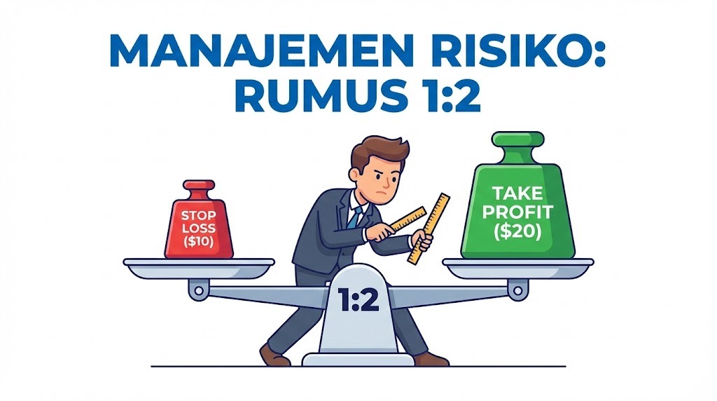 Rumus sederhananya adalah rasio 1:2. Jika kalian siap rugi $10 (jarak SL), maka target untungnya minimal harus $20 (jarak TP). Dengan cara ini, meskipun kalian salah prediksi beberapa kali, akun kalian tetap bisa bertumbuh dalam jangka panjang.
