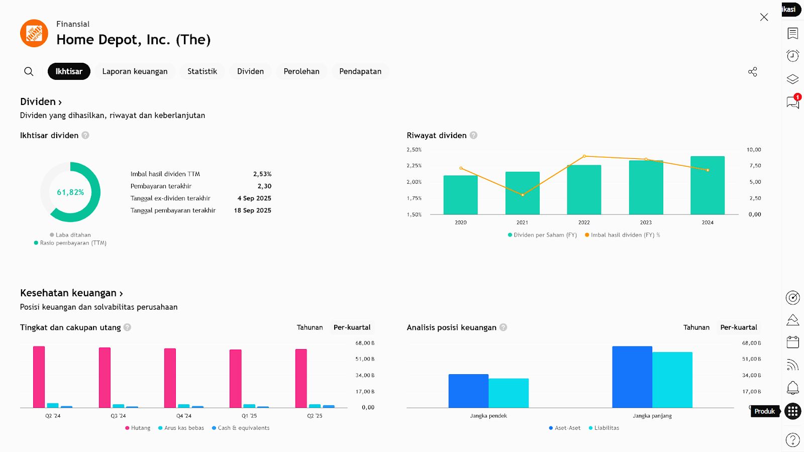 Interpretasi: Meskipun pertumbuhan masih kecil dan tekanan makro belum sepenuhnya mereda, Home Depot tetap menunjukkan profitabilitas dan posisi pasar yang kuat.