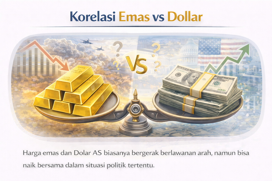 Hal ini dikarenakan harga emas dipatok dalam satuan Dolar AS, sehingga penguatan Dolar membuat emas terasa lebih “mahal” bagi pemegang mata uang lain. Namun, dalam situasi geopolitik yang sangat ekstrim, korelasi ini bisa berubah. Terkadang, baik Dolar AS maupun emas sama-sama naik karena keduanya dianggap sebagai tempat aman.