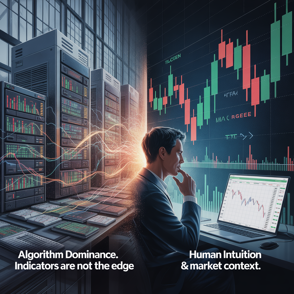Apa artinya bagi trader retail seperti kita? Artinya, traders menggunakan indikator forex bahkan kebanyakan yang sering ditemui seperti Moving Average, RSI, Stochastic, Bollinger Bands, dll itu harus melawan supercomputer yang memproses berita atau analisa hanya dalam waktu micro detik.