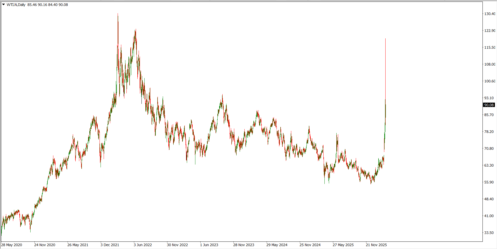 Pada awal eskalasi konflik, harga minyak global mengalami lonjakan signifikan. Kontrak West Texas Intermediate (WTI) bahkan sempat melesat hingga mendekati level $120 per barel, yang merupakan level tertinggi sejak periode gejolak energi global pada 2022.