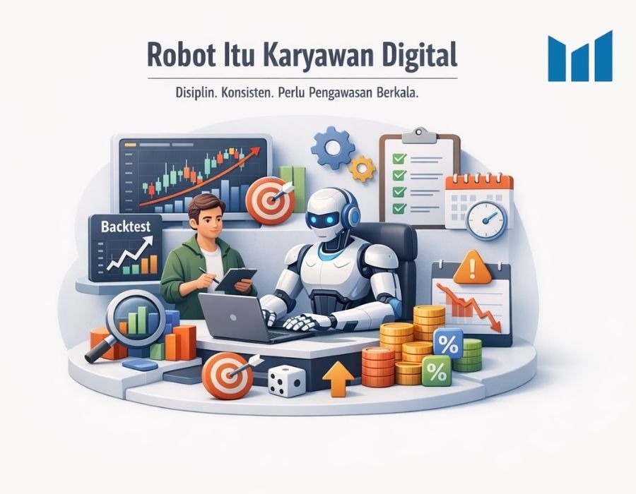 Robot bukan pohon duit. Ia lebih tepat disebut karyawan digital. Disiplin. Konsisten. Tidak emosional. Tidak balas dendam ke market. Tidak overtrading karena takut ketinggalan momentum.