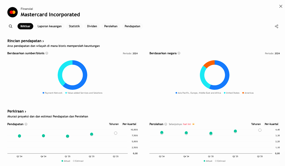 - Jika proyeksi benar, ini menunjukkan bahwa Mastercard tetap mampu tumbuh cukup kuat di tengah tantangan makro, yang berarti sektor pembayaran (payments) masih cukup dinamis.
