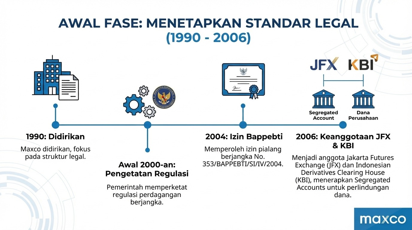 Perjalanan bisnis sebuah institusi keuangan yang bertahan lebih dari tiga dekade menunjukkan kemampuan adaptasi terhadap berbagai perubahan regulasi dan dinamika ekonomi global. Maxco didirikan pada tahun 1990, jauh sebelum era perdagangan digital dapat diakses secara massal. Pada fase awal ini, fokus utama perusahaan adalah membangun struktur legalitas yang sah di mata hukum Indonesia.