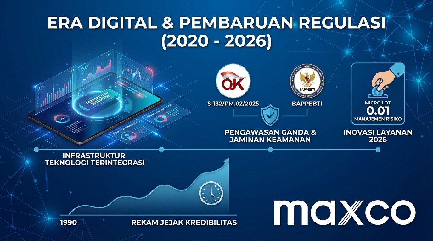 Selain teknologi, legalitas Maxco kembali diperkuat pada dekade ini. Maxco kini beroperasi dengan diawasi oleh Otoritas Jasa Keuangan (OJK) melalui surat keterangan No. S-132/PM.02/2025, melengkapi pengawasan dari Bappebti. Lapis pengawasan ganda ini memberikan jaminan keamanan yang jauh lebih ketat dibandingkan dengan tahun-tahun sebelumnya.