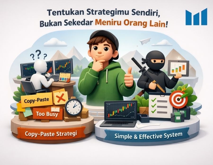 Setelah mental dan risiko lebih terkendali, barulah masuk ke strategi. Di sini banyak trader nyasar karena terlalu sibuk meniru, bukan memahami.