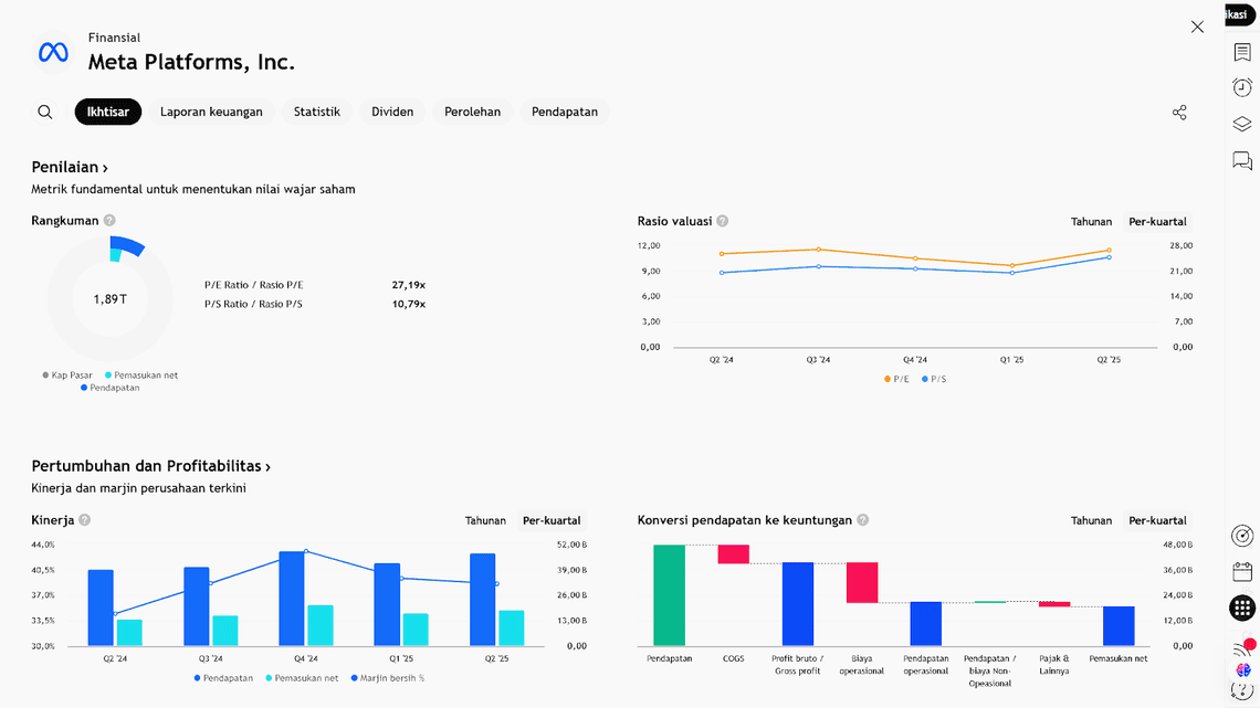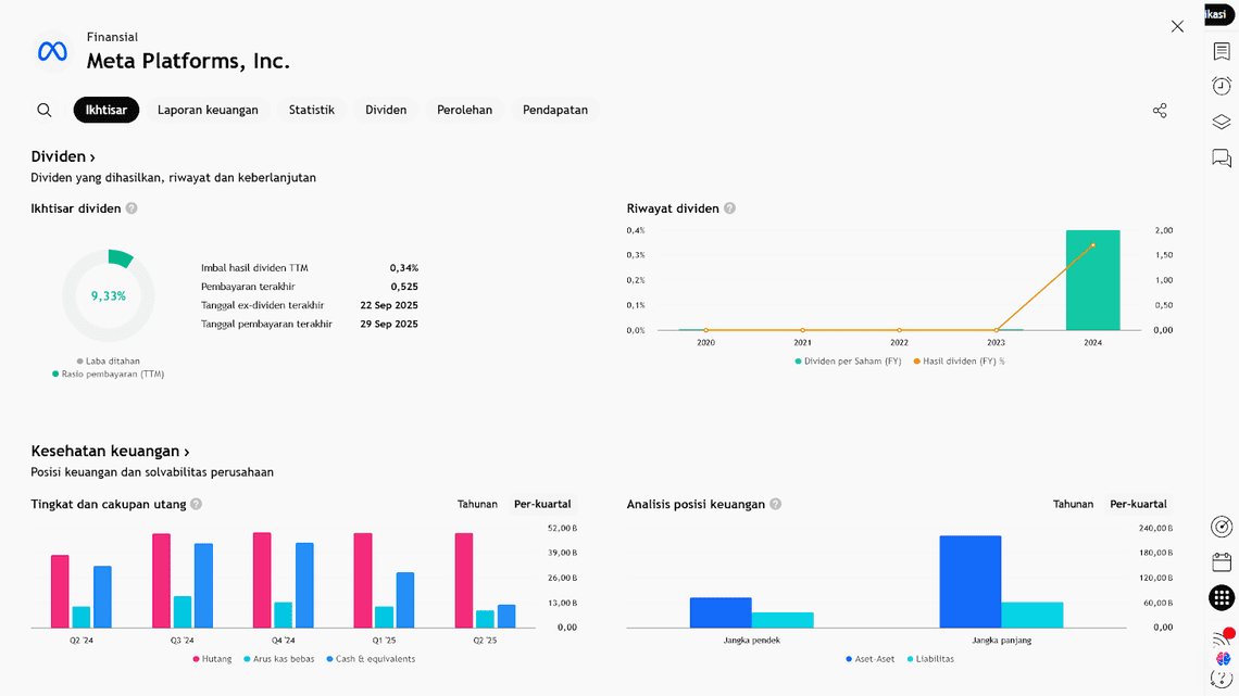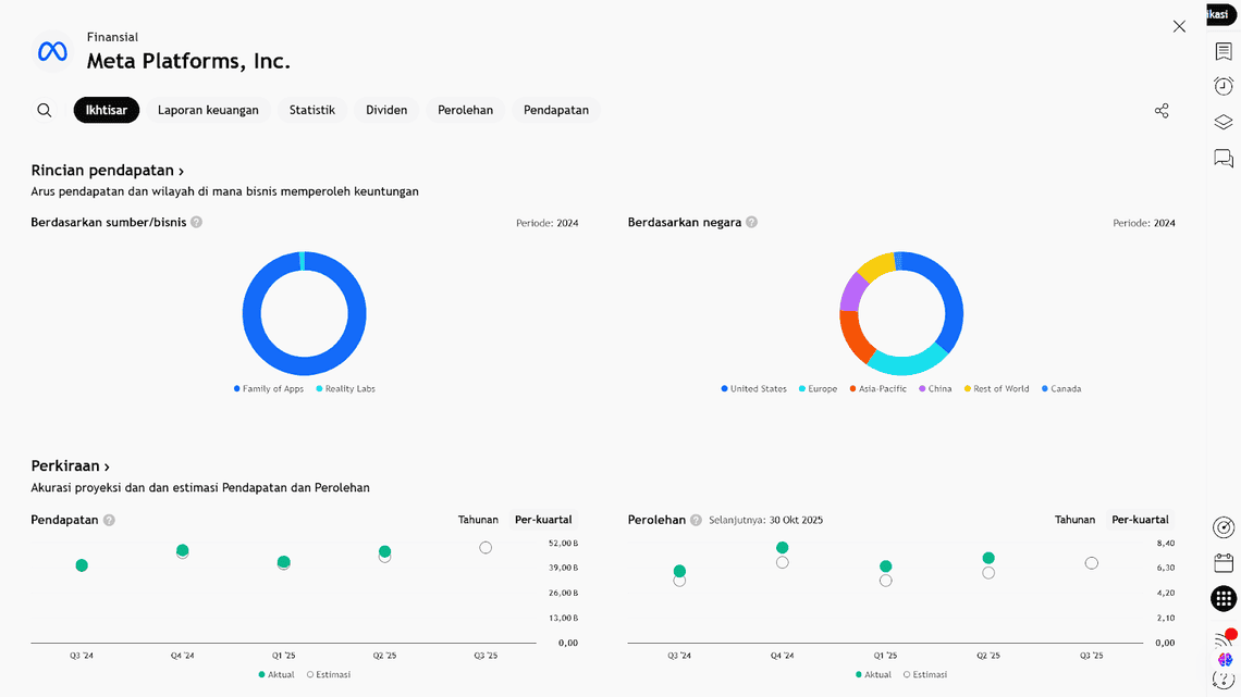 • Meta telah menunjukkan momentum yang kuat — pertumbuhan iklan yang kembali solid, dan kekuatan platform seperti Instagram/Reels menjadi pendorong utama.