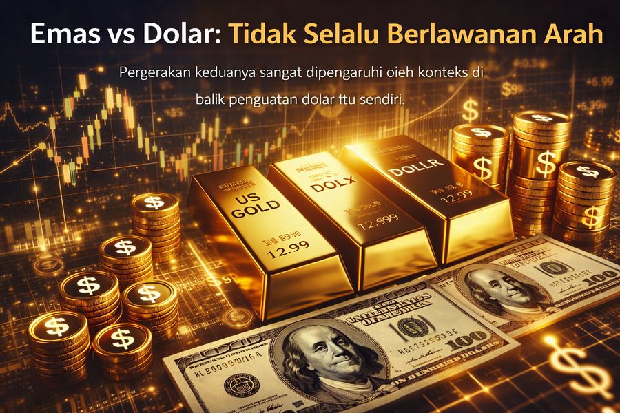 Hubungan emas dan dolar memang sering dianggap berlawanan, tetapi tidak selalu sesederhana itu. Pergerakan keduanya sangat dipengaruhi oleh konteks di balik penguatan dolar itu sendiri.