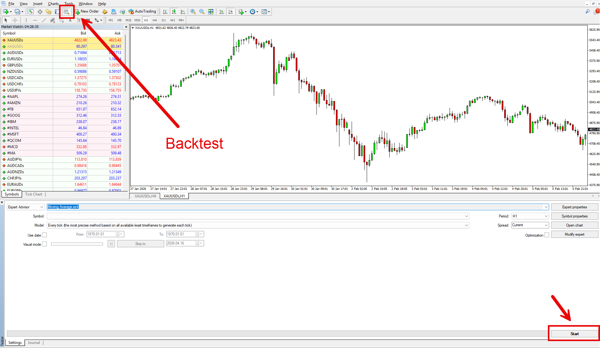 2. Pilih satu pair dan satu timeframe dulu – Misal AUDUSD di H1 atau XAUUSD di M15. Jangan langsung tes semua pair sekaligus biar fokus.