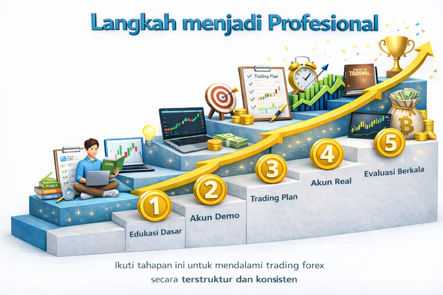 Jika kamu serius ingin mendalami trading, jangan terburu-buru. Ikuti tahapan ini agar proses belajarmu lebih terstruktur: