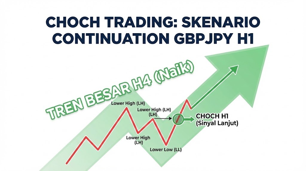 • Momen: Tiba-tiba di H1 muncul CHOCH Bullish atau harga menembus struktur atas.