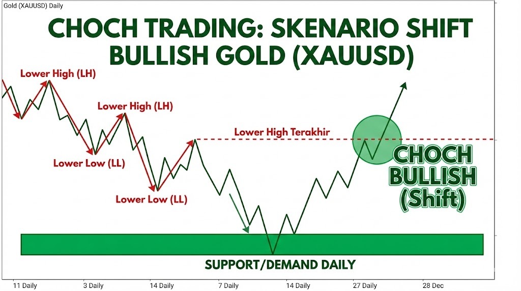 2. Skenario Shift Bullish Gold XAUUSD Daily