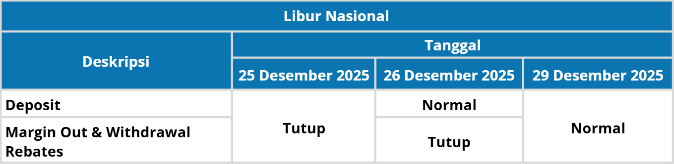 Kami ingin menginformasikan kepada Anda tentang jadwal operasional untuk Libur Nasional sebagai berikut: