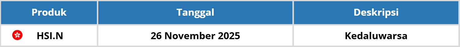Kami informasikan bahwa akan terdapat kontrak berjangka Futures yang akan mencapai batas waktu kedaluwarsa pada bulan November 2025: