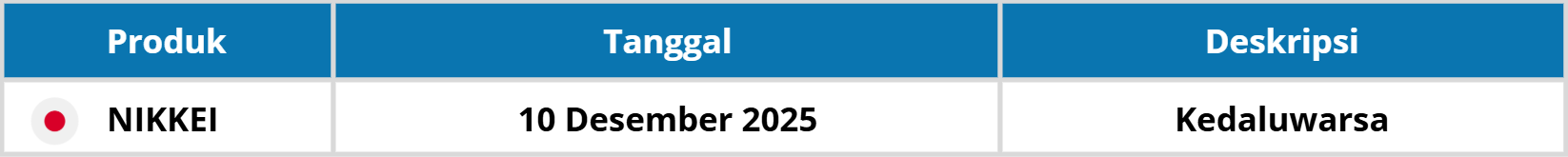 Kami informasikan bahwa akan terdapat kontrak berjangka Futures yang akan mencapai batas waktu kadaluarsa pada bulan Desember 2025: