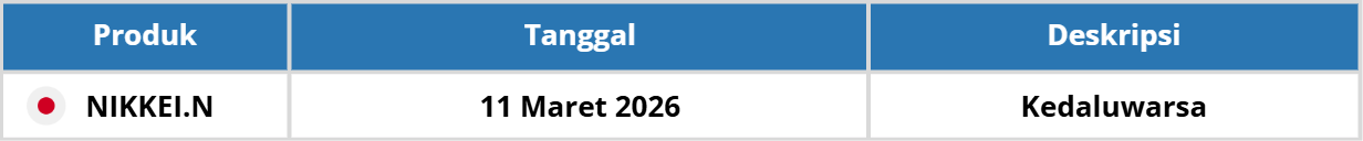 Kami informasikan bahwa akan terdapat kontrak berjangka Futures yang akan mencapai batas waktu kedaluwarsa pada bulan Maret 2026: