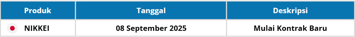 Kami informasikan bahwa akan terdapat kontrak berjangka Futures yang akan mencapai batas waktu kadaluarsa pada bulan September 2025: