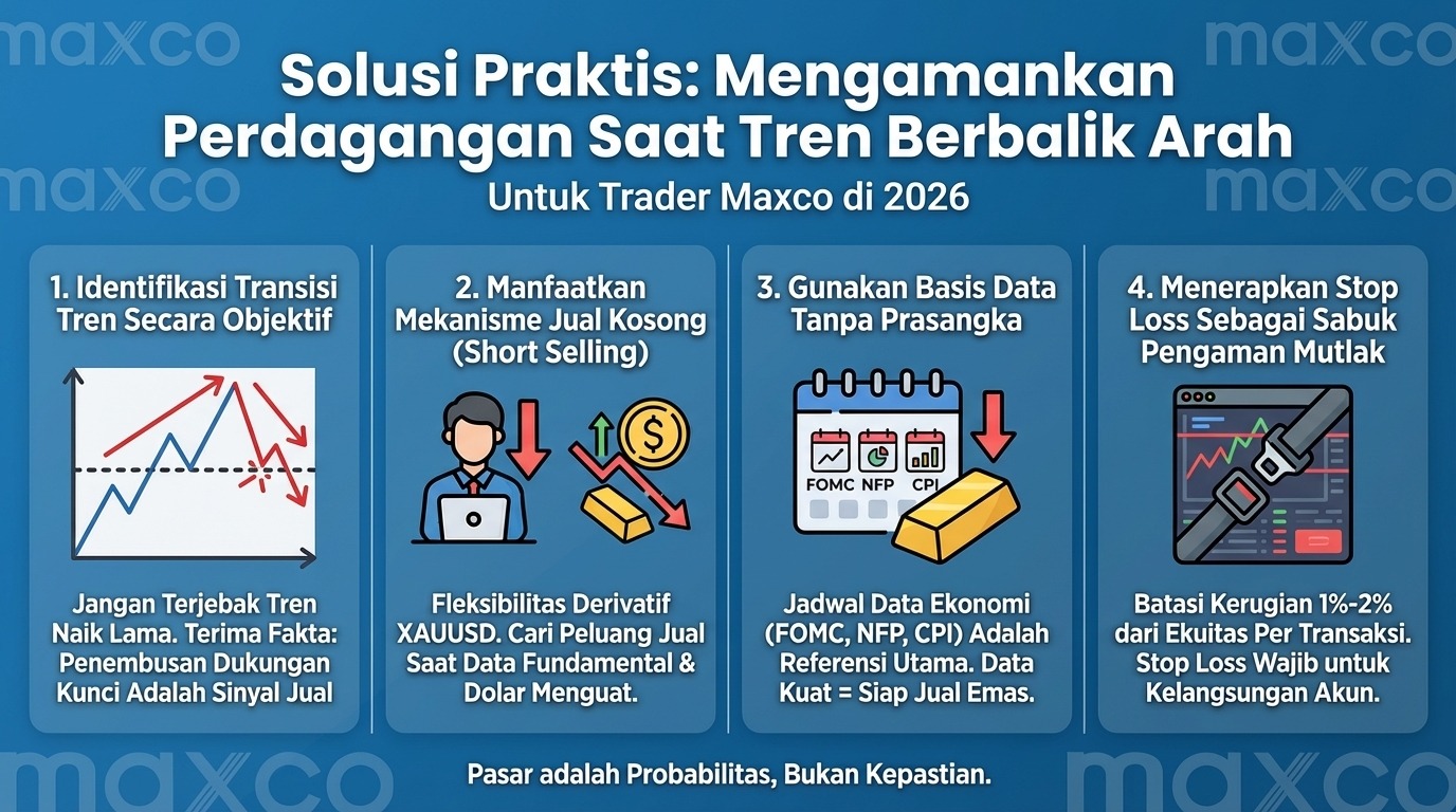 Memahami bahwa harga bisa turun adalah langkah pertama. Langkah selanjutnya yang menentukan hasil akhir adalah eksekusi di lapangan. Bagi Trader Maxco yang ingin bertahan dan bahkan mendulang profit di skenario penurunan tahun 2026, berikut adalah solusi praktis yang wajib diterapkan ke dalam jurnal aktivitas trading: