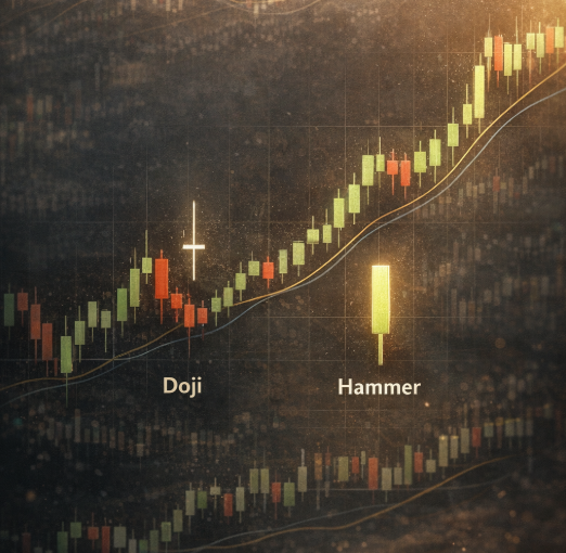 Namun disini, kita akan lebih kerucutkan lagi hanya fokus pada dua candle saja. Ini bisa dijadikan sinyal awal yang bisa traders “notice” untuk bisa masuk market lebih presisi agar tidak ketinggalan momentum. Dua candle tersebut adalah doji, dan hammer.
