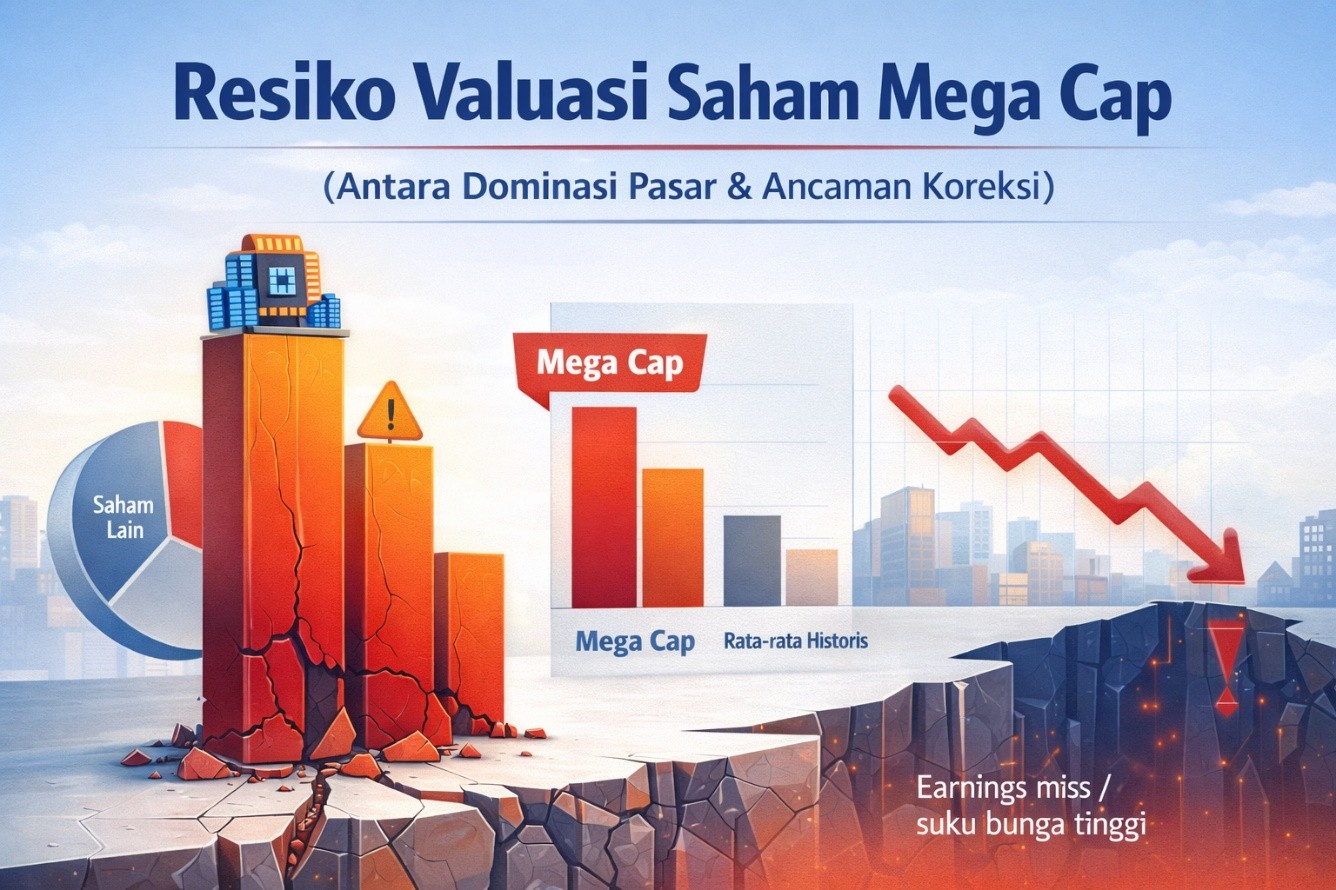 Bobot saham Mega Cap yang sangat besar di indeks menciptakan risiko konsentrasi. Kenaikan indeks sering kali hanya ditopang oleh segelintir saham, sementara mayoritas saham lain stagnan atau bahkan melemah. Kondisi ini membuat pasar terlihat kuat di permukaan, tetapi rapuh secara struktural.