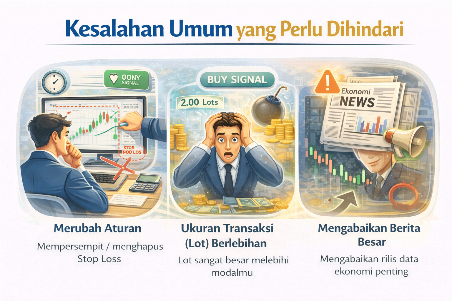 - Ukuran Transaksi (Lot) Berlebihan: Hanya karena merasa sinyal tersebut pasti benar, trader seringkali mempertaruhkan terlalu banyak dana dalam satu transaksi. Ingat, tetap gunakan lot yang proporsional dengan modalmu.