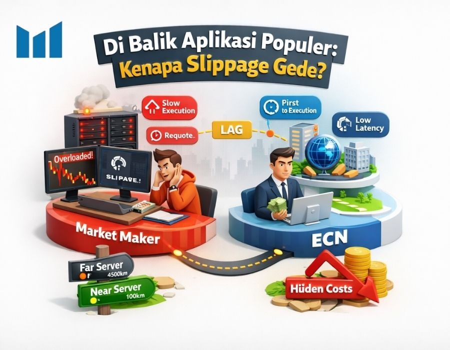 Saat market bergerak cepat, harga bisa berubah dalam sepersekian detik. Jadi waktu order kamu diproses, harga yang tersedia sudah beda. Artinya, harga di layar itu indikasi terakhir, bukan jaminan.