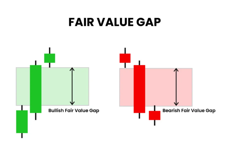 Ketidakseimbangan ini merupakan area yang bisa jadi “celah” yang kita incar untuk jadi area entry. Di zaman sekarang ketika konten-konten trading mulai membludak ada istilah lain yang muncul yaitu fair value gap atau FVG, namun pada prinsipnya imbalance dan FVG itu sama, dengan contoh sebagai berikut :