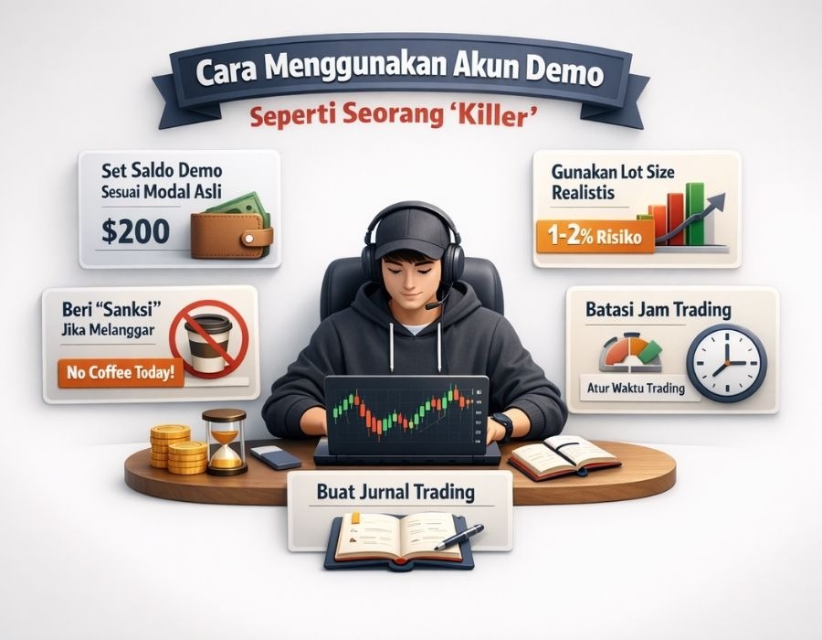Coba pikir, kenapa performa di demo bisa beda jauh sama akun riil? Padahal chart-nya sama, indikatornya sama, bahkan strateginya sama. Bedanya cuma satu: uangnya. Di demo, kamu seperti latihan tinju pakai samsak. Dipukul sekeras apa pun, samsaknya nggak akan balas. Tapi di ring beneran, satu pukulan bisa bikin kamu limbung. Di artikel ini, kita bakal bongkar 5 kebiasaan toxic saat Demo Trading Forex yang sering nggak sadar kamu pelihara, plus cara realistis buat buangnya sebelum terbawa ke akun riil.