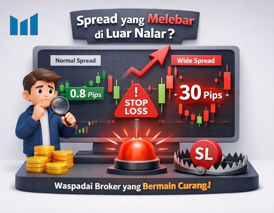 Ada modus yang sering dibahas trader senior: spread melebar sesaat sebelum menyentuh Stop Loss, lalu kembali normal setelah SL kena. Secara sistem, ini legal karena spread memang bisa berubah. Tapi kalau polanya terlalu sering dan terlalu “pas”, kamu patut curiga.