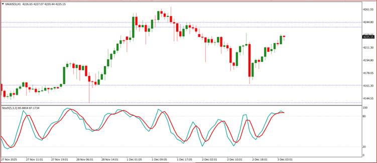 On the H1 timeframe, gold still shows limited upside potential, with resistance seen around 4235–4238, which may serve as an area for renewed selling interest. The risk boundary appears around 4246, the next intraday resistance level.