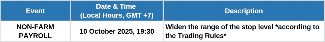 We would like to inform you of the important market events taking place in October 2025. Please be aware that due to the ongoing U.S. government shutdown, certain economic data releases may be delayed: