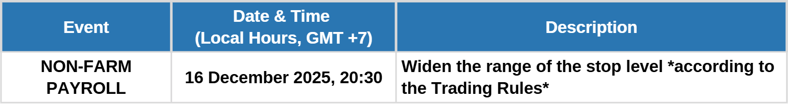 We would like to inform you of the important market event in the respective markets for December 2025: