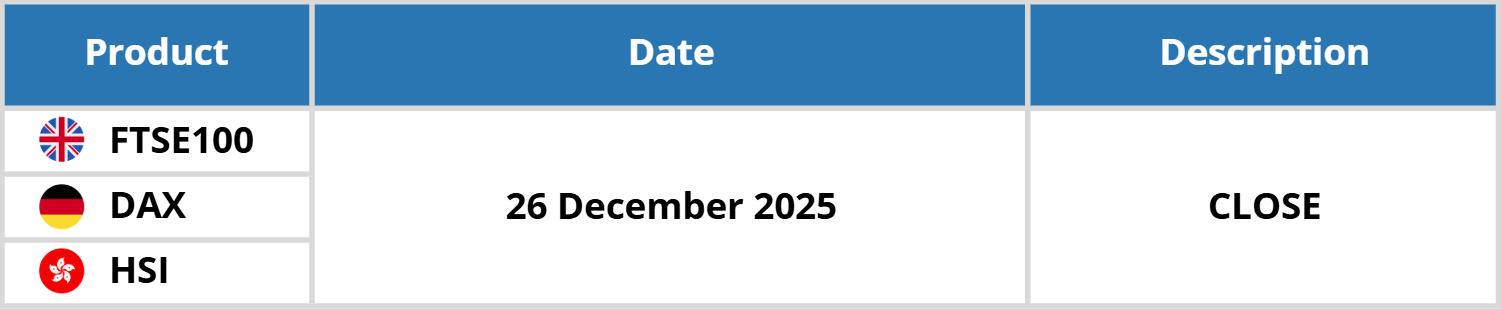 We would like to inform you that there will be an important market event due to Boxing Day Observed. Please kindly record the date and time in the table below:
