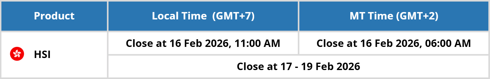 We would like to inform you that there will be an important market event due to Lunar New Year’s Holiday. Please kindly record the date and time in the table below :