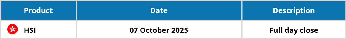 We would like to inform you that there will be a trading session update due to Mid Autumn Moon Festival Day, please kindly record the date and time in the table below: