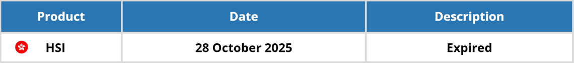 We would like to inform you of the expired product for some Index Futures in the respective markets for October 2025: