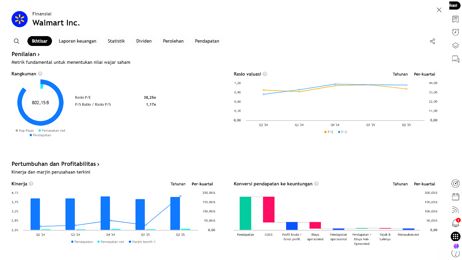 Walmart trades at a premium relative to traditional retailers due to its business stability and digital growth. However, valuation adjustments may occur if margins disappoint or if forward guidance is revised downward.