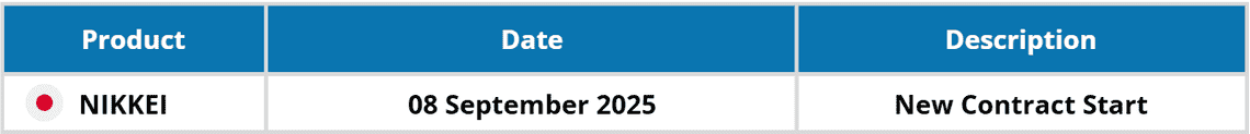 TRADING SCHEDULE CHANGE: NIKKEI SEPTEMBER 2025