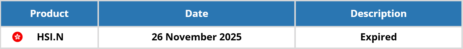 We would like to inform you of the expired product for some Index Futures in the respective markets for November 2025: