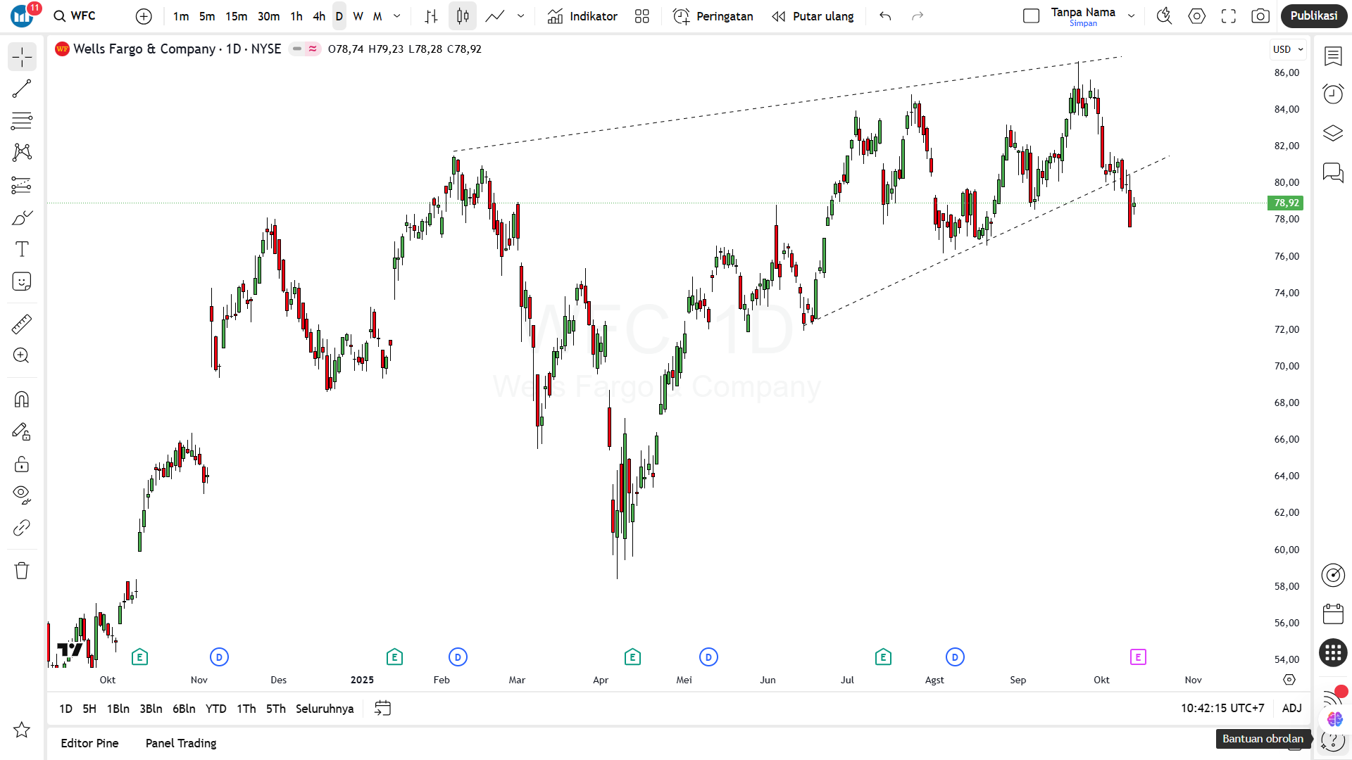 - Since late September, Wells Fargo (WFC) shares have declined by around 7.5%, ahead of its third-quarter 2025 financial report.