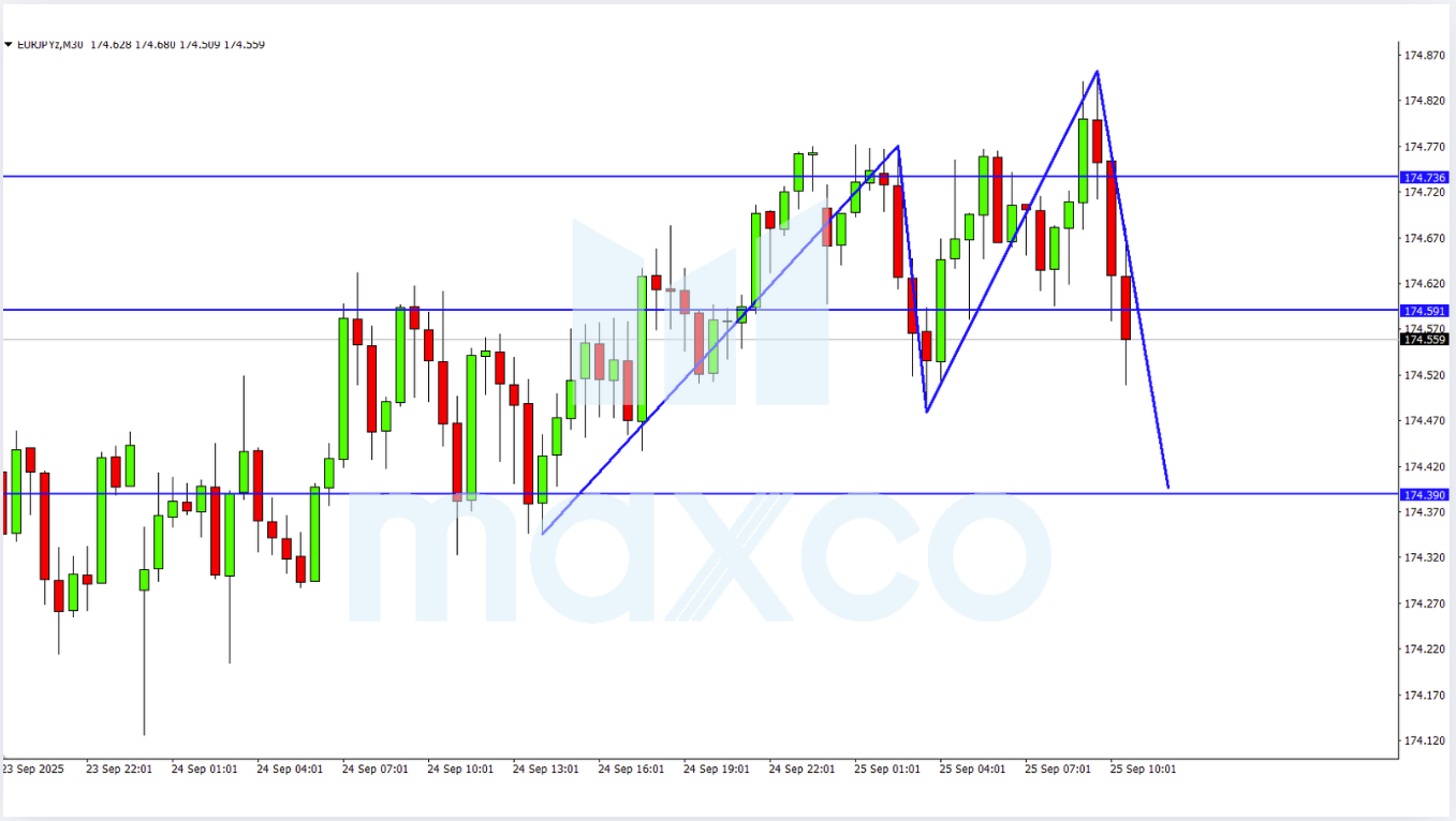The current outlook for EURJPY suggests a bearish move. This weakness is supported by candlestick pattern confirmation and the formation of a double top chart pattern, which often signals a potential reversal. Furthermore, signs of a trendline shift downward reinforce the bearish sentiment. Trading Recommendation:Sell EURJPYEntry : 174.591Take Profit : 174.390Stoploss : 174.736 *DISCLAIMER: All content […]